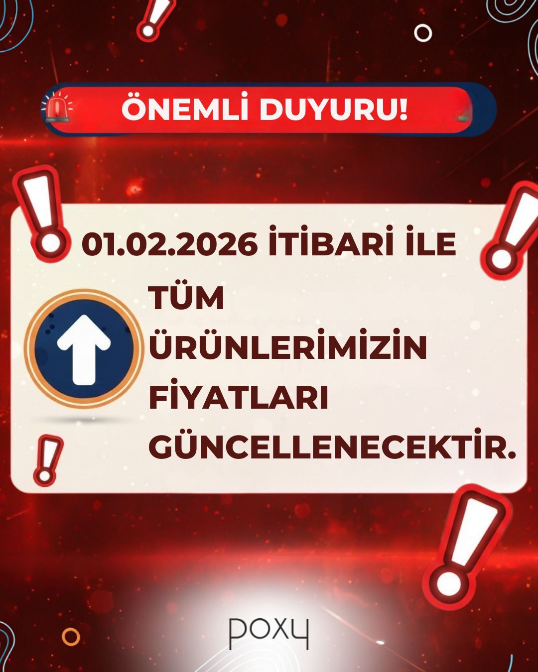 Sizlere daha kaliteli hizmet sunabilmek ve artan maliyetleri karşılayabilmek adına fiyatlarımızda 01.02.2026 itibari ile güncelleme yapılacaktır. Bu değişiklik, ürün ve hizmetlerimizi sürdürülebilir şekilde sunmaya devam edebilmemiz için gerekli bir adımdır.